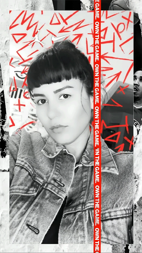 To push the theme “OWN THE GAME” I used the Nike assets as if they were my own doodles often used in my art lenses. I created an abstract rear facing camera lens in a 360 space. I also created a split screen experience in the selfie-cam mode with the same pattern as the 360 experience.